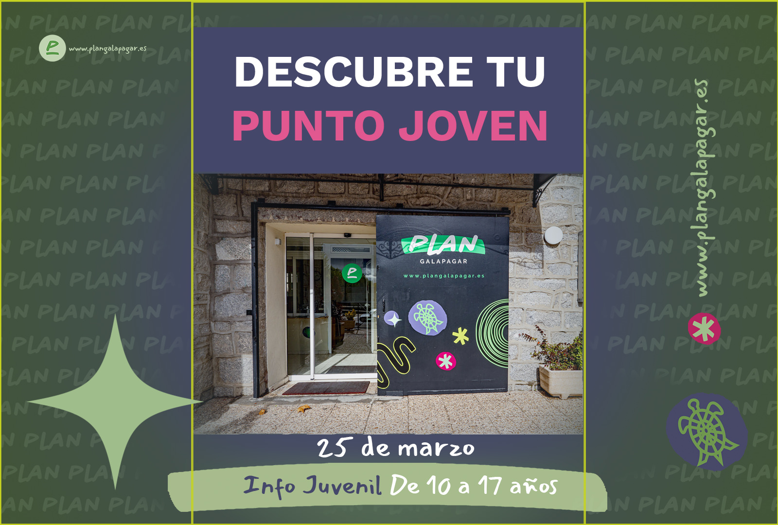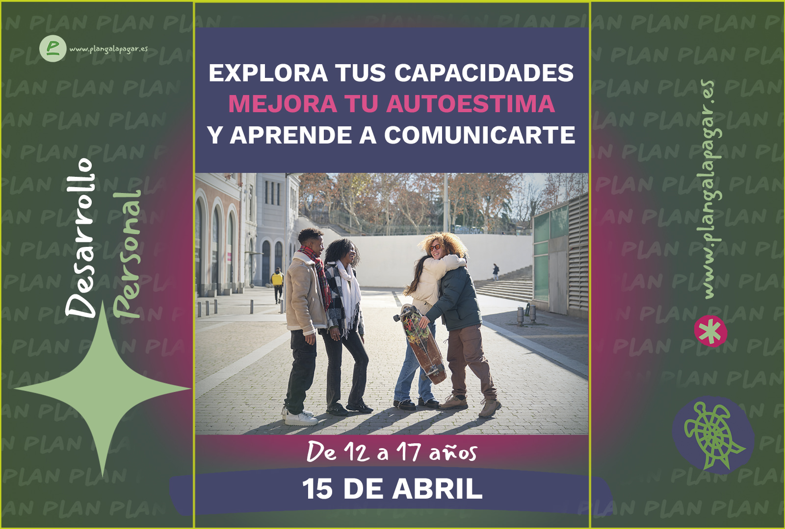Elige tu grupo Infantiles Jóvenes Familiares PLANES INFANTILES PLANES PARA JÓVENES PLANES FAMILIARES Síguenos en Redes Sociales y cuéntanos tu experiencia con Plan Galapagar. SeguirSeguirSeguir